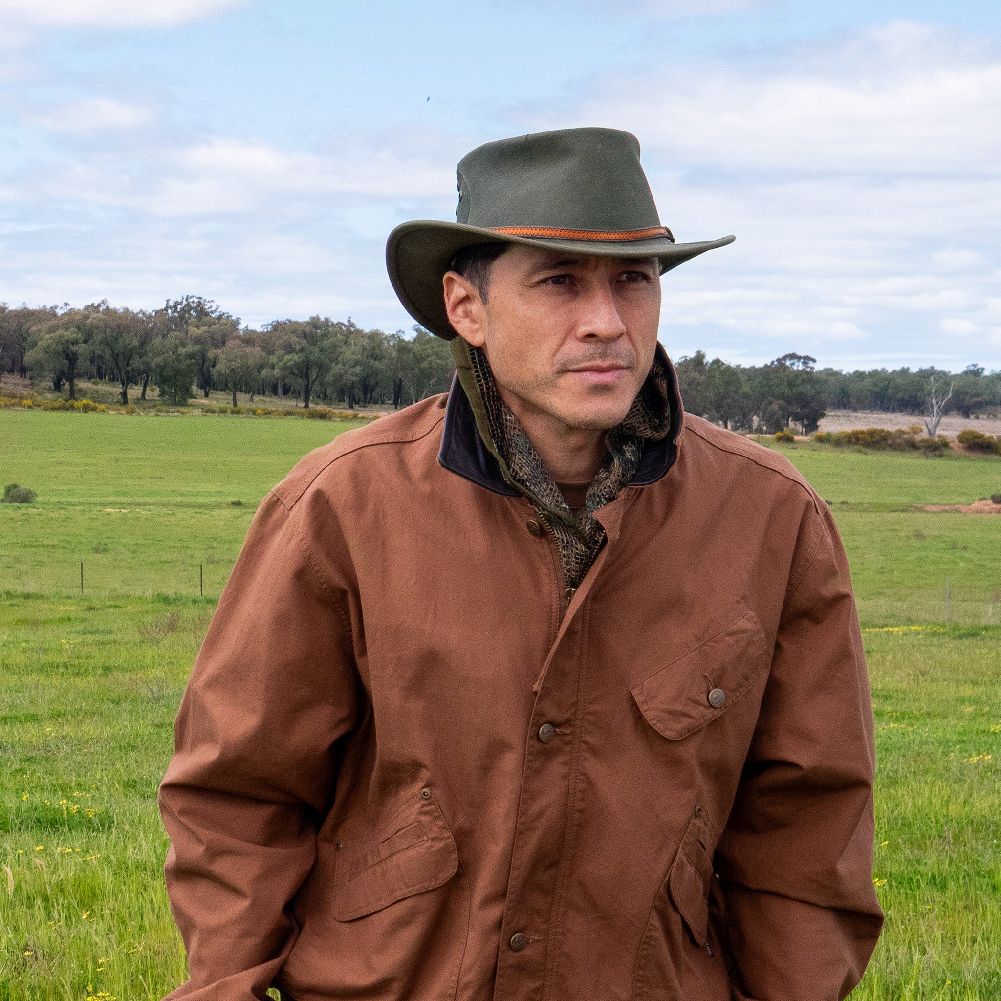 The Wallaroo Kangaroo Leather Hat is built for the wanderer who likes to move fast and pack light. Kangaroo hide keeps it feather weight yet tough enough for long days from the Top End to Tassie trails. The narrow brim gives clean lines with a three piece hat band that keeps things classic. Pack it down in your bag and it springs back ready for the next leg