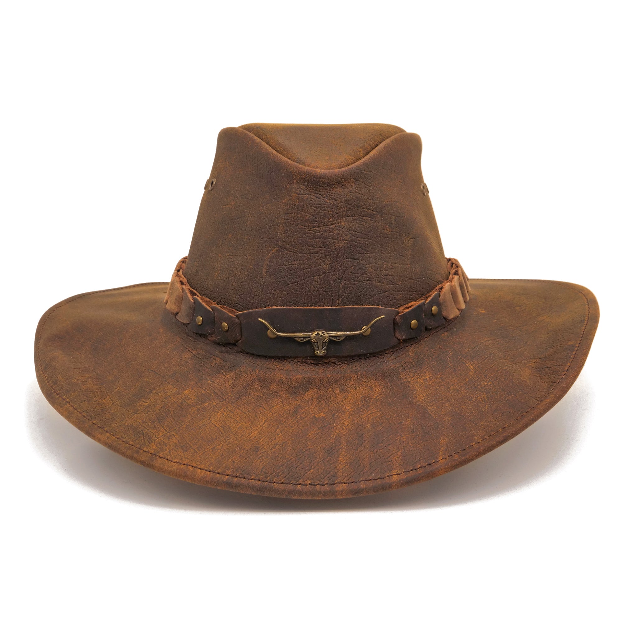 Out where the red dirt runs and the sun don’t take a day off, The Brumby rides with ya. Shaped by hand, tough as old boots, and just as reliable — this ain't no city slicker’s hat. With a longhorn badge sittin’ proud on pull-up leather, it’ll shade ya from the scorchin’ sun and keep the storm off your back. Made for musterers, wanderers, and little tackers too. From XS to 3XL, it’s Aussie-made and outback-tested. Grab one and ride proud, mate.