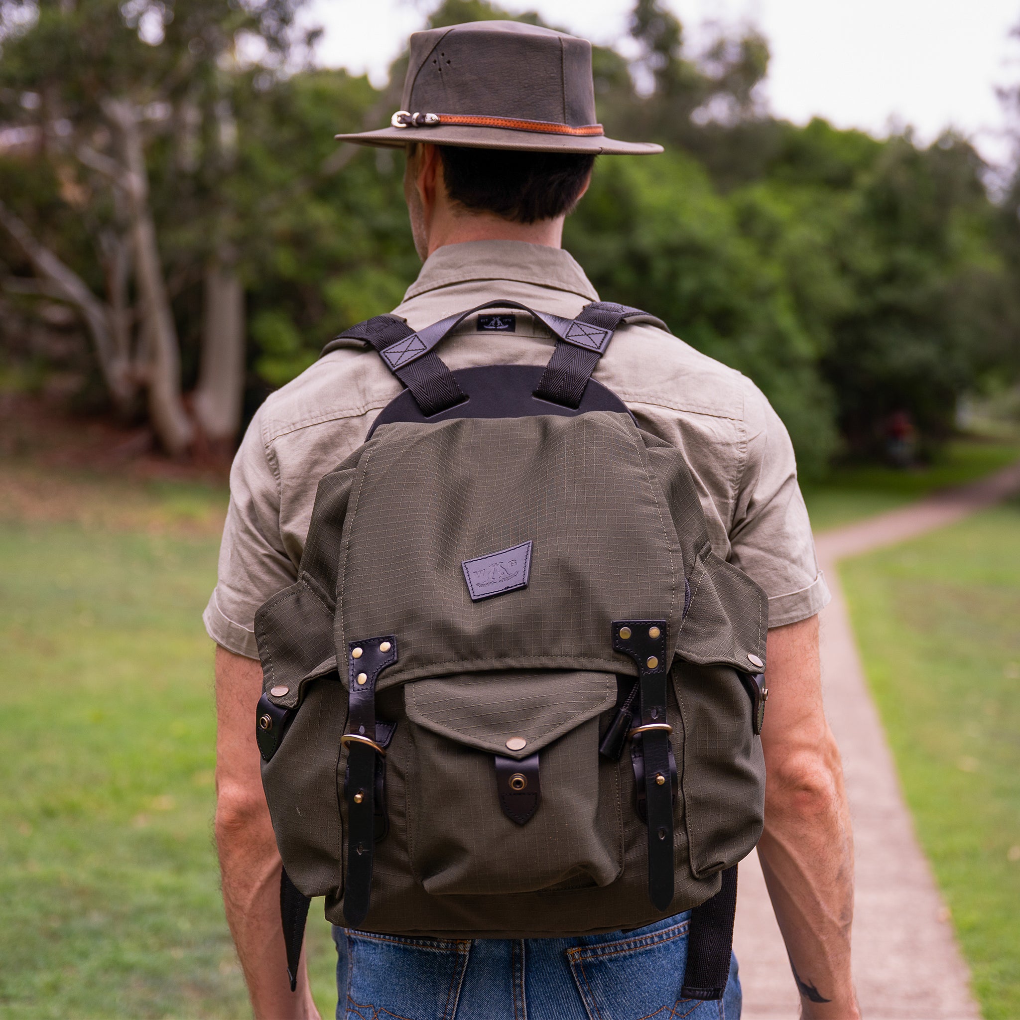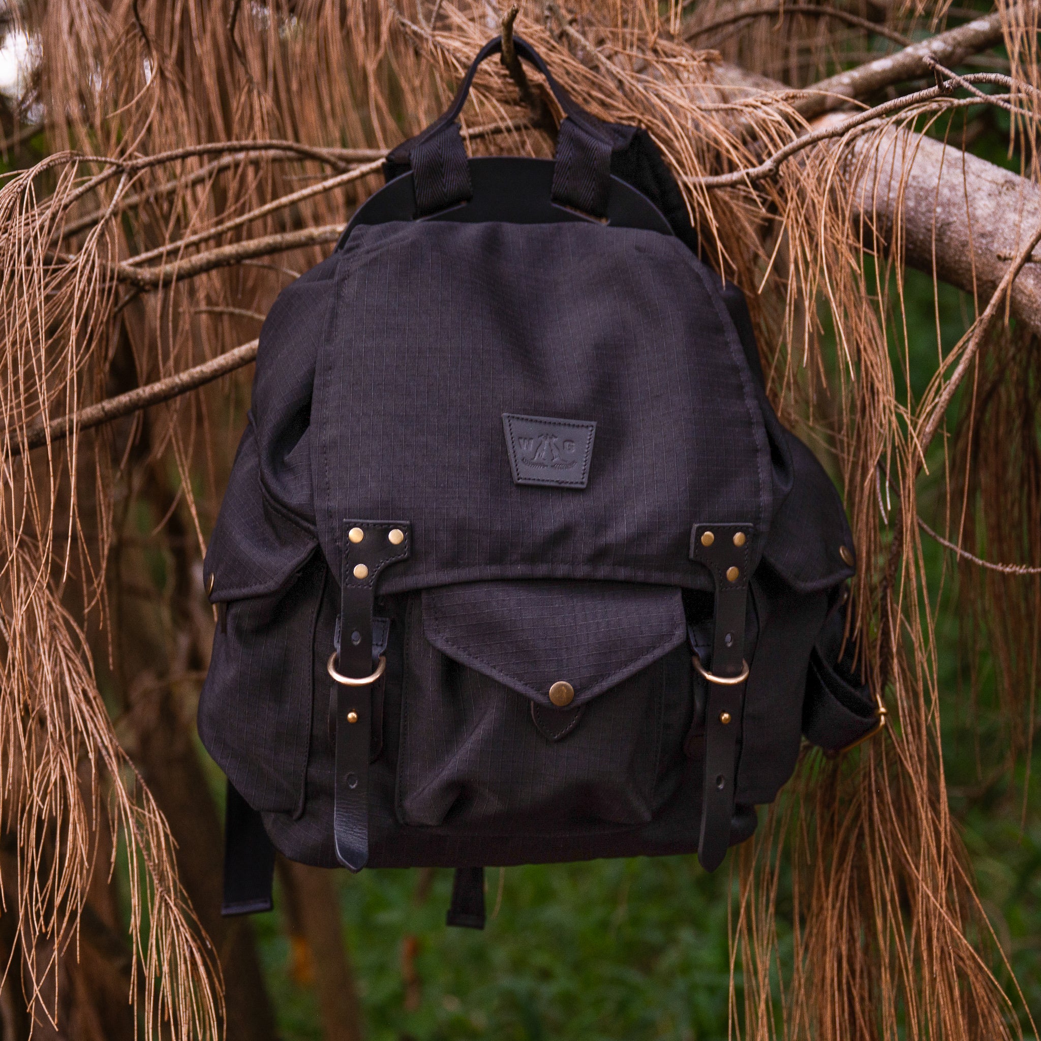 The Stornoway Backpack is the kind of pack you sling over your shoulder when the road out of town looks better than the road in. A 25L heavy duty rig built from military grade ripstop tarpaulin, trimmed in bridle leather and finished with handmade brass fittings that catch the light like an old pub rail at sundown.